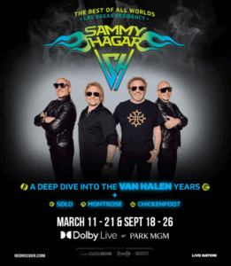 LOS ANGELES, CA. 12/24/2025 – Sammy Hagar will be bringing his “Best of All Worlds” show back to Vegas for a total of 11 concerts throughout March (11th, 13th, 14th, 18th, 20th, and 21st) and September (18th, 19th, 23rd, 25th, and 26th). Just like Hagar’s previous “Best of All Worlds” residency shows at Dolby Live earlier this year, the setlist will draw from his era with Van Halen, as well as his vast solo discography and his Montrose material. He’ll once again be backed by his all-star band featuring classic Van Halen bassist Michael Anthony, guitar virtuoso Joe Satriani, drummer Kenny Aronoff, and multi-instrumentalist Rai Thistlethwayte.